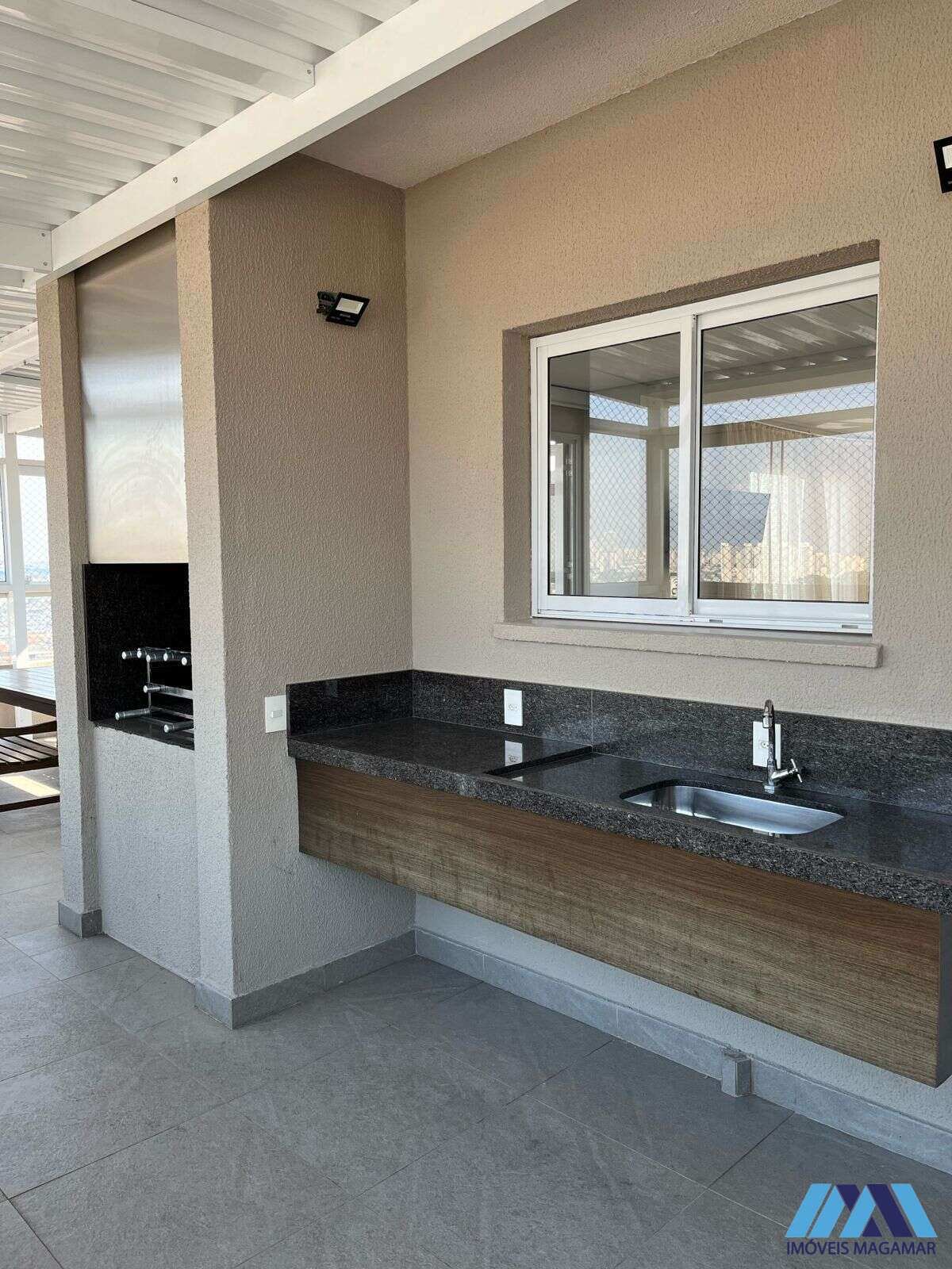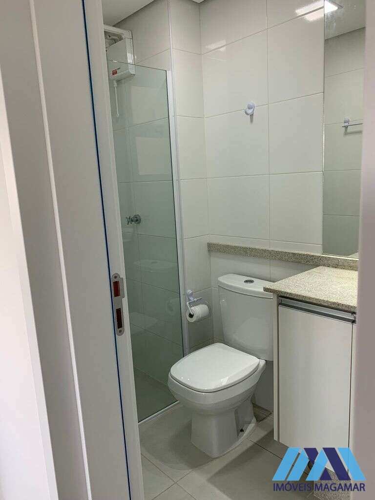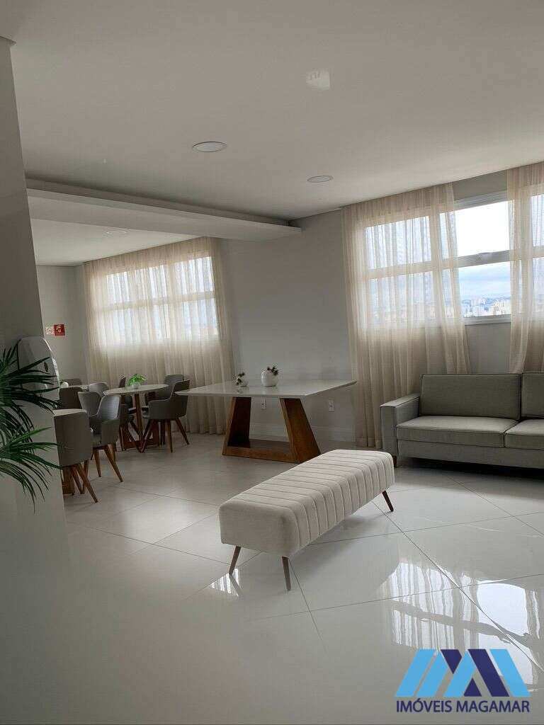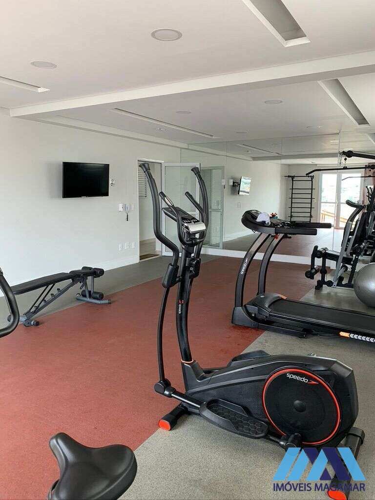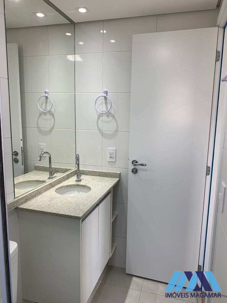 Persianas automatizadas com blackout, sacada, armários na cozinha e banheiro, geladeira, lava e seca, micro-ondas, piso vinílico nos dormitórios, box na lavandeira e banheiro, além de duas vagas de garagem.